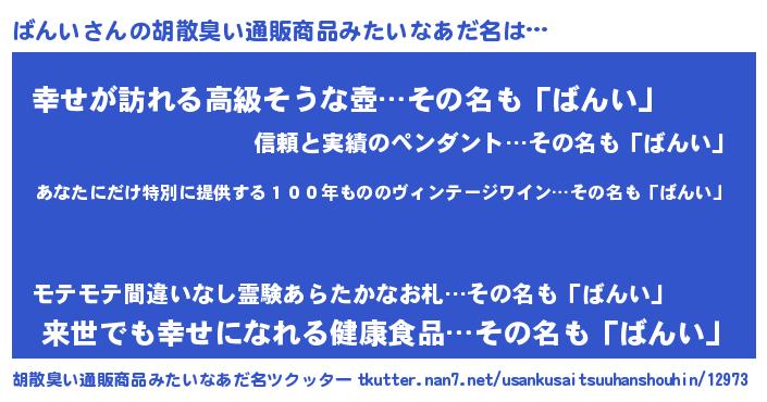 | 意味不明あだ名 | 『つくし科ばんい属』『永久保存ばんい』 |