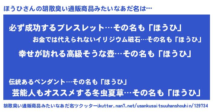 | ヒーロー風カッコイイあだ名 | 『ウルトラほうひマン』『スーパーホウヒ』 |