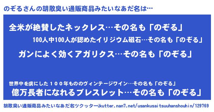 | 意味不明あだ名 | 『自称のぞる』『とにかく怪しいのぞる』 |