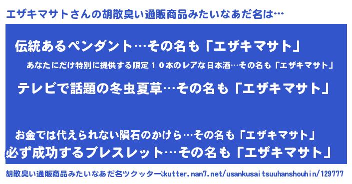 | 意味不明あだ名 | 『自称エザキマサト』 |