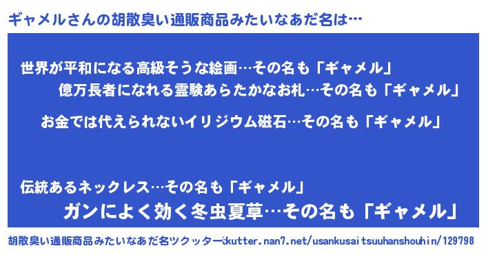 | ヒーロー風カッコイイあだ名 | 『愛の使者ギャメル』『スーパーギャメル』 |