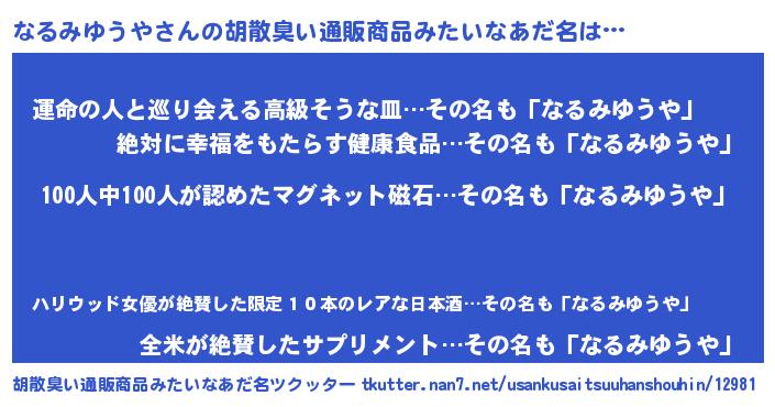 | 意味不明あだ名 | 『眠気覚ましガムなるみゆうや味』 |