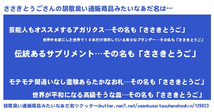 | 肩書あだ名 | 『ささきとうご団長』『ささきとうご総統』 |