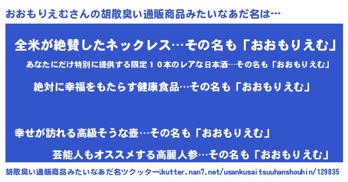 | ヘコむあだ名 | 『おおもりえむ(苦笑)』『おおっぺ』 |