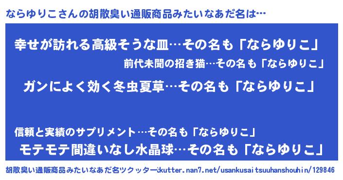 | 欧米人風あだ名 | 『トリンドルならゆりこ』 |