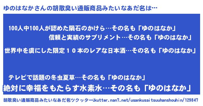 | 男性向けラノベタイトル風あだ名 | 『この素晴らしい世界にゆのはなかを!』 |