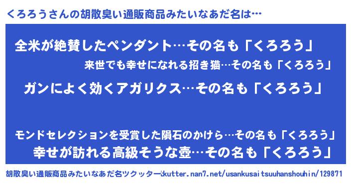 | 肩書あだ名 | 『くろろう総統』『くろろうリーダー』 |