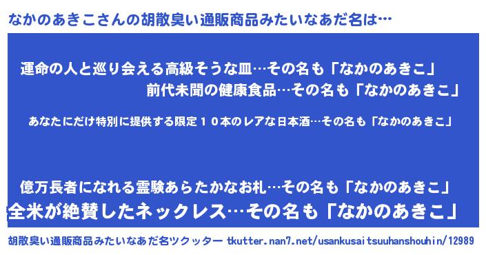 | 意味不明あだ名 | 『住所不定無職なかのあきこ(41歳)』 |