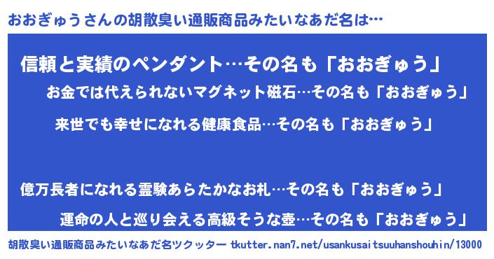 | 意味不明あだ名 | 『永久保存おおぎゅう』 |