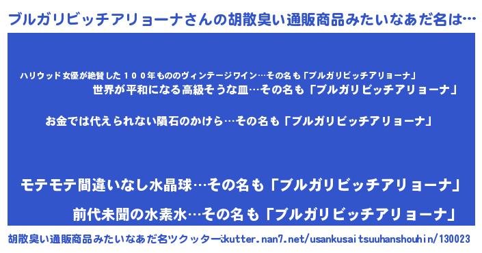 | ヒーロー風カッコイイあだ名 | 『愛の使者ブルガリビッチアリョーナ』 |