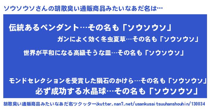 | 男性向けラノベタイトル風あだ名 | 『転生したらソウソウソだった件』 |