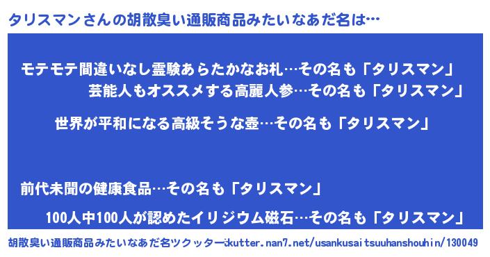 タリスマンさんの胡散臭い通販商品みたいなあだ名をツクッター!