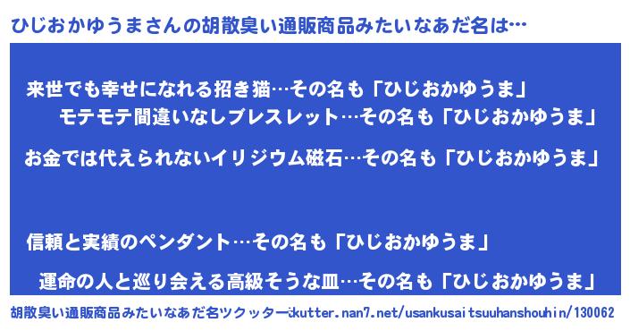 | ヘコむあだ名 | 『ひじおかゆうま(笑)』『レバニラ』 |