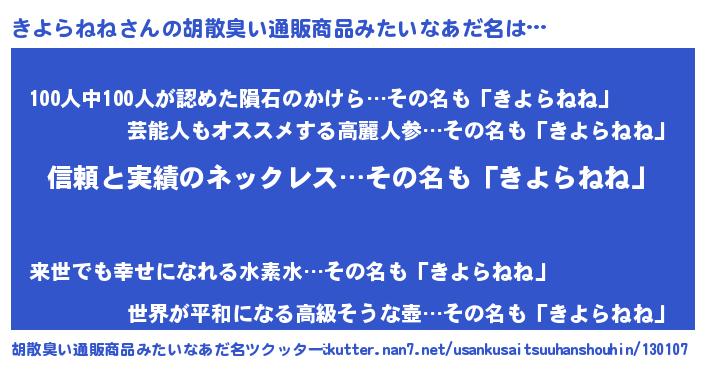 | 意味不明あだ名 | 『とにかく怪しいきよらねね』 |