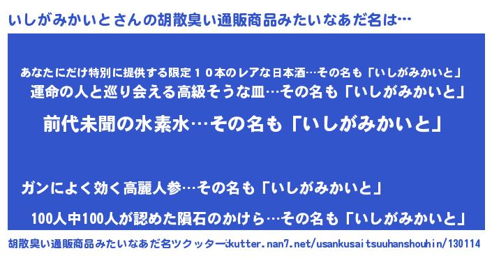 | 伝説のあだ名 | 『古文書に記された勇者いしがみかいと』 |
