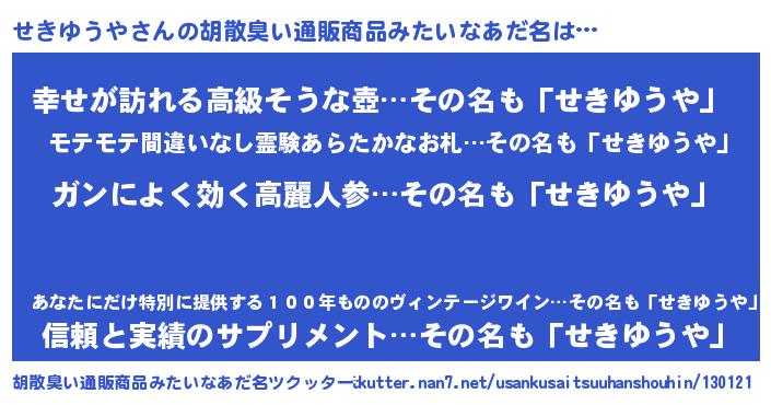 | 恥ずかしいあだ名 | 『セキユウヤデラックス』『せきっちょ』 |