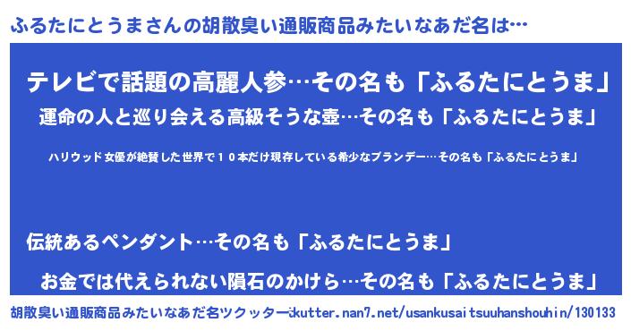 ふるたにとうまさんの胡散臭い通販商品みたいなあだ名をツクッター!