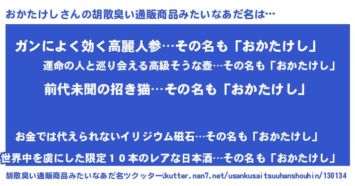 | ヘコむあだ名 | 『おかたけし(笑)』『豆乳』 |