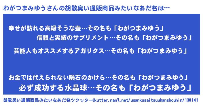 わがつまみゆうさんの胡散臭い通販商品みたいなあだ名をツクッター!