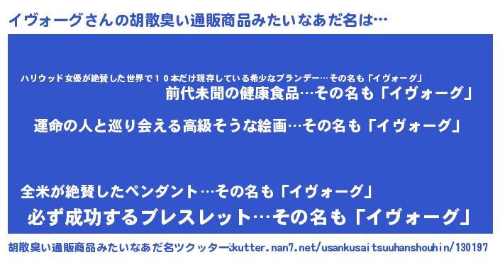| 意味不明あだ名 | 『イヴォーグフォーエバー』 |