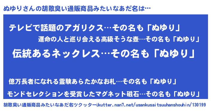 | 恥ずかしいあだ名 | 『ヌユリンリン』『ヌユリデラックス』 |