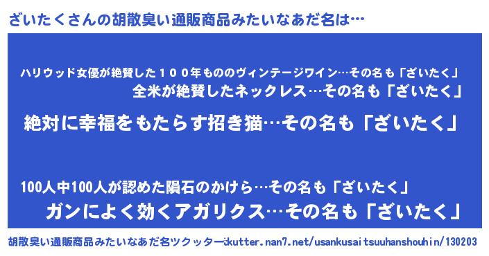 | 意味不明あだ名 | 『永久保存ざいたく』『自称ざいたく』 |