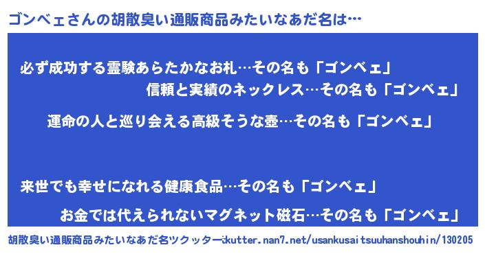 | 欧米人風あだ名 | 『ゴンベェクリステル』 |