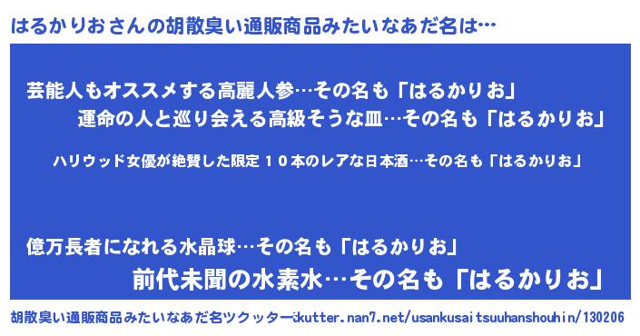 | 料理風あだ名 | 『はるかりおのカルパッチョ風』 |