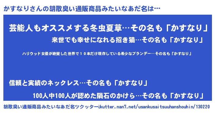 | 料理風あだ名 | 『かすなりごはん』『かすなりのトマト煮』 |