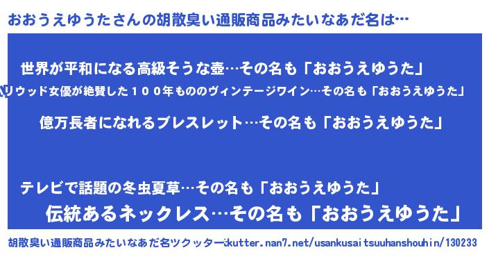 | 意味不明あだ名 | 『ニラ科おおうえゆうた属』 |