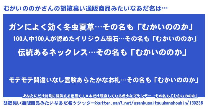 | 意味不明あだ名 | 『とにかく怪しいむかいののか』 |