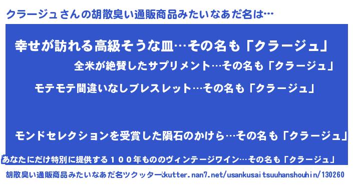 | ヒーロー風カッコイイあだ名 | 『スーパークラージュ』『仮面クラダー』 |