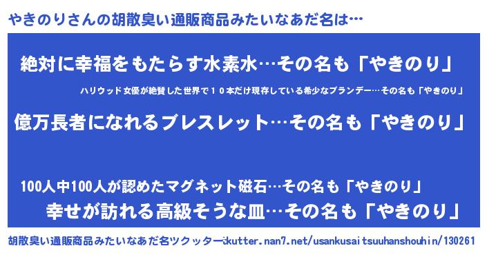 | 欧米人風あだ名 | 『やきのり・ステッグマイヤー』 |