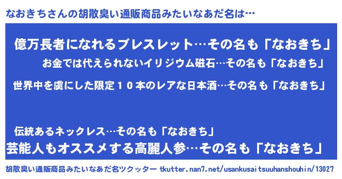 | 意味不明あだ名 | 『住所不定無職なおきち(65歳)』 |