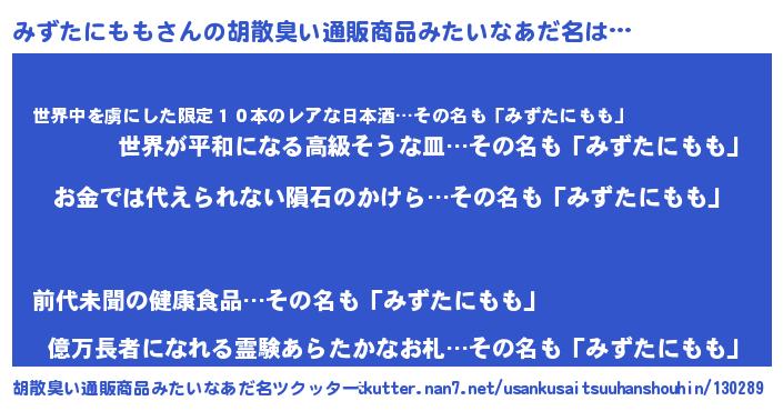 | 男性向けラノベタイトル風あだ名 | 『おまえをオタクにしてやるから、俺をみずたにももにしてくれ! 』 |