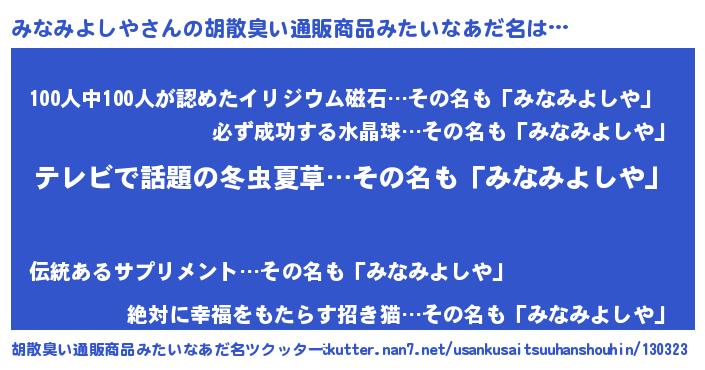 | 意味不明あだ名 | 『自称みなみよしや』 |