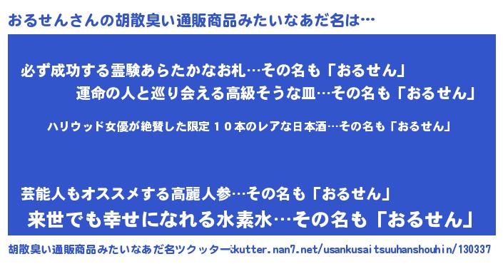 | 料理風あだ名 | 『おるせんのカルパッチョ風』 |