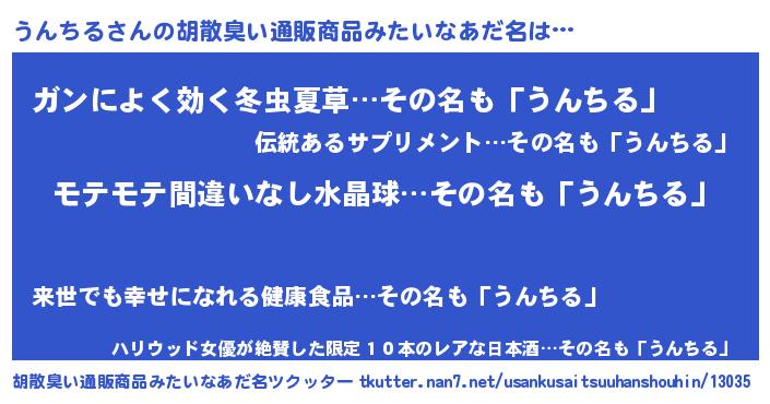 | 意味不明あだ名 | 『ペロリンうんちる』『自称うんちる』 |