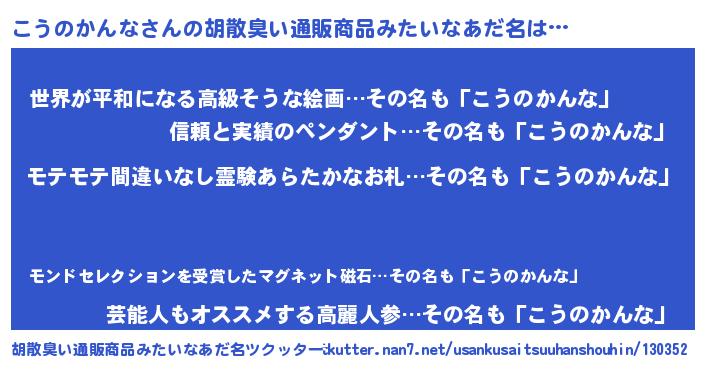 | 男性向けラノベタイトル風あだ名 | 『こうのかんなの憂鬱』 |