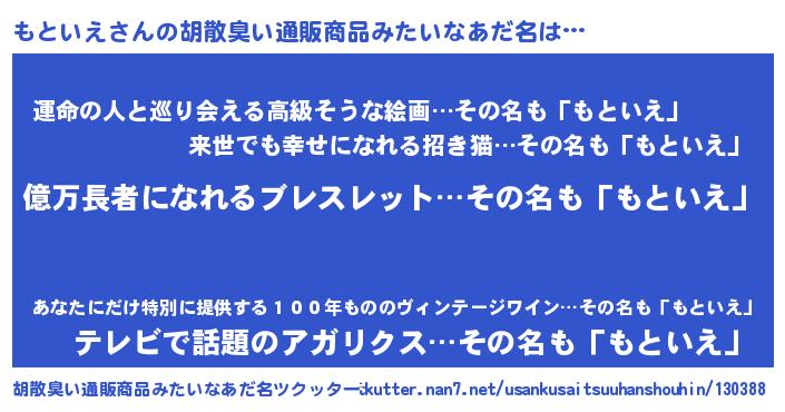 | 意味不明あだ名 | 『ペロリンもといえ』『自称もといえ』 |