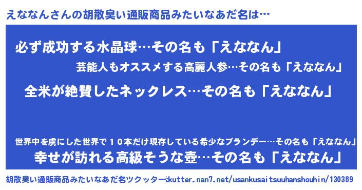 | 欧米人風あだ名 | 『ウサインえななん』『マイケルえななん』 |