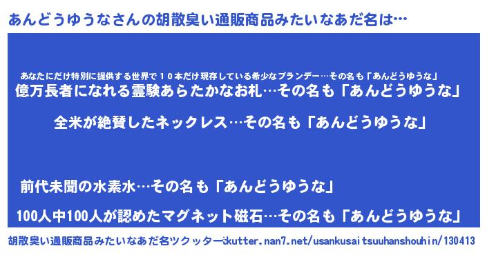 | 意味不明あだ名 | 『とにかく怪しいあんどうゆうな』 |