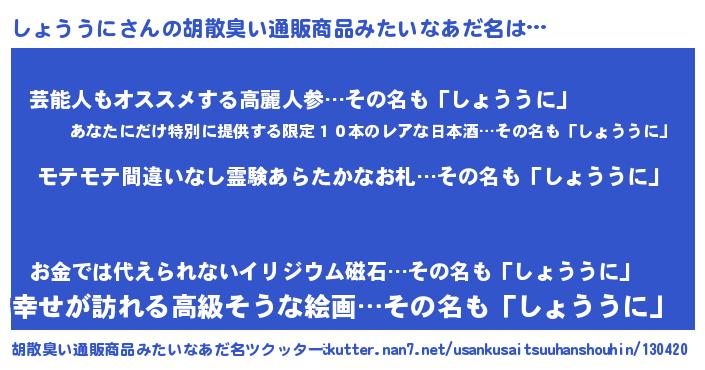 | 意味不明あだ名 | 『ペロリンしょううに』『自称しょううに』 |