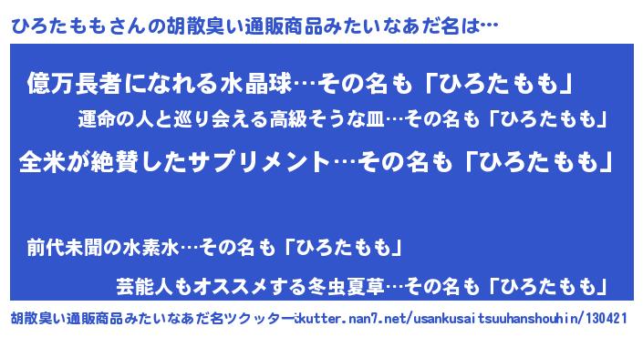| 意味不明あだ名 | 『とにかく怪しいひろたもも』 |
