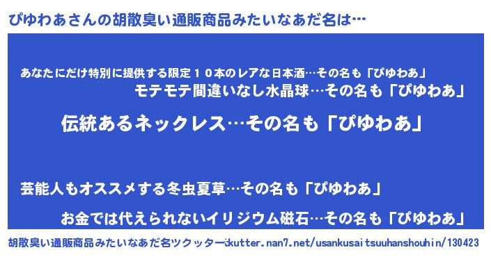 | ヘコむあだ名 | 『ぴゆっ子』『ぴゆにゅー』『豆乳』 |