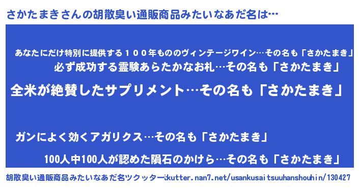 | 肩書あだ名 | 『さかたまき団長』『さかたまき上級大将』 |