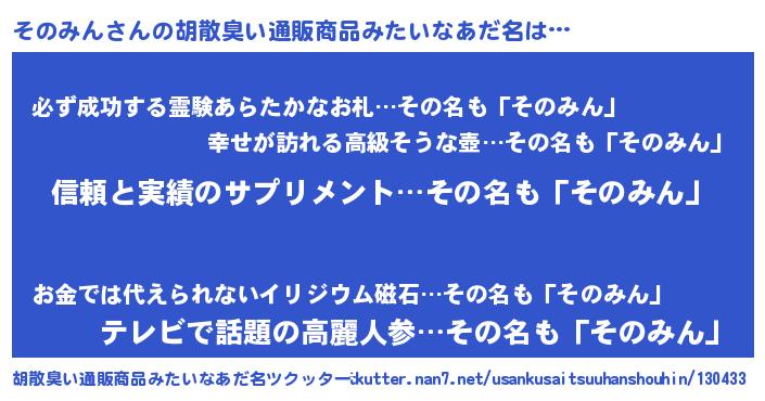 | 意味不明あだ名 | 『とにかく怪しいそのみん』 |