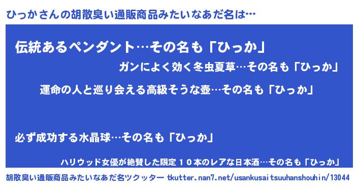 | 意味不明あだ名 | 『つくし科ひっか属』『自称ひっか』 |