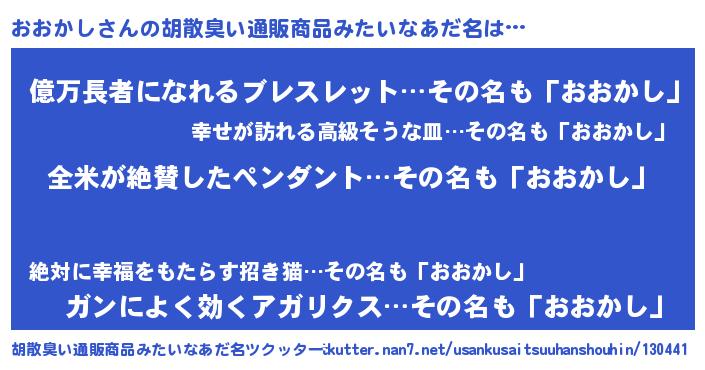 | 意味不明あだ名 | 『とにかく怪しいおおかし』 |