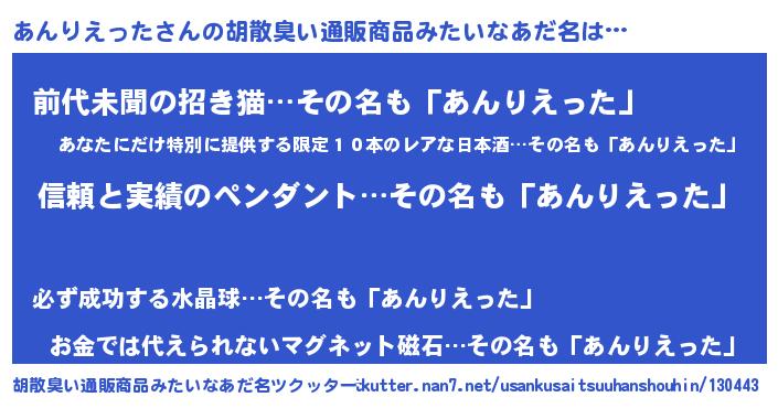 あんりえったさんの胡散臭い通販商品みたいなあだ名をツクッター!